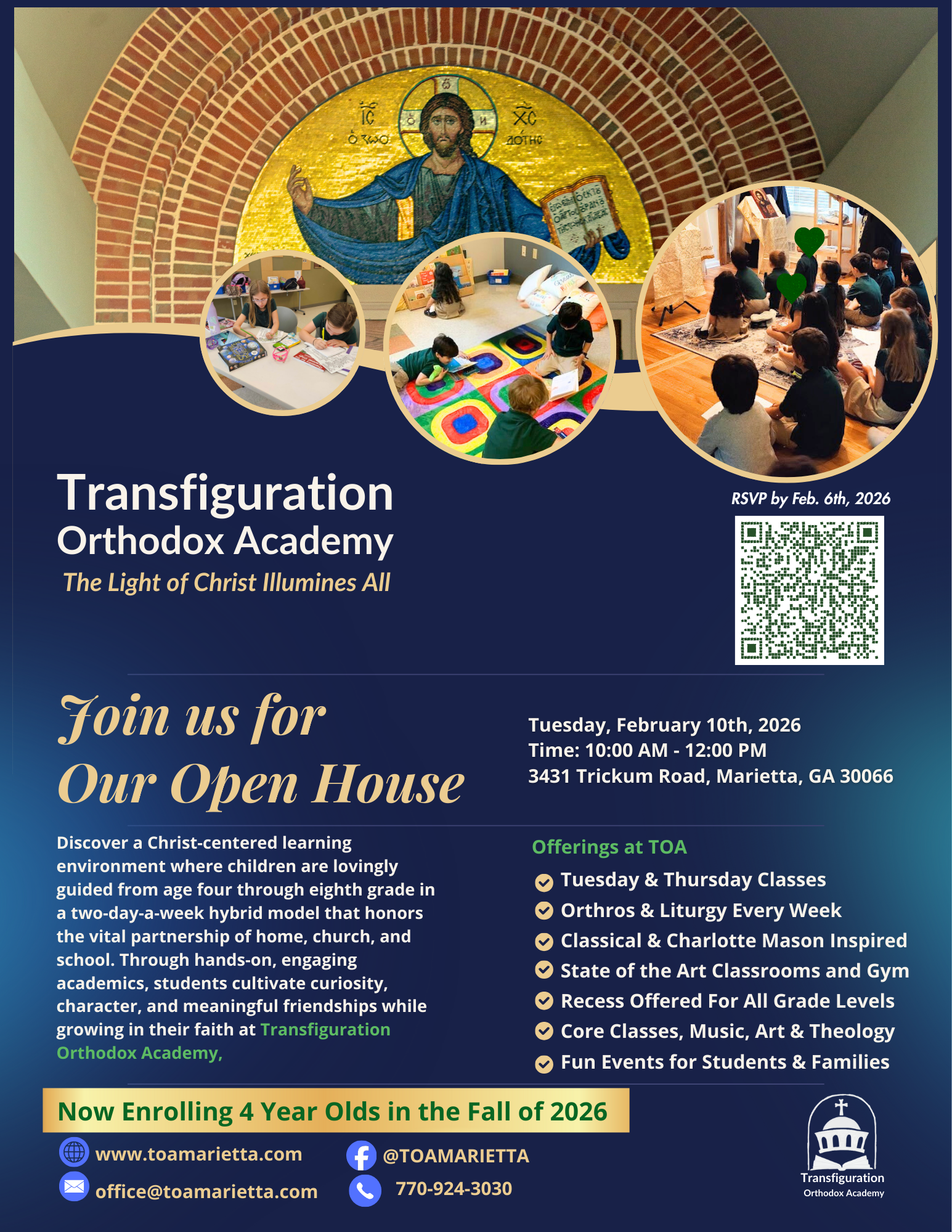 We are a K-8 hybrid school serving the Metro Atlanta Orthodox Christian Community.